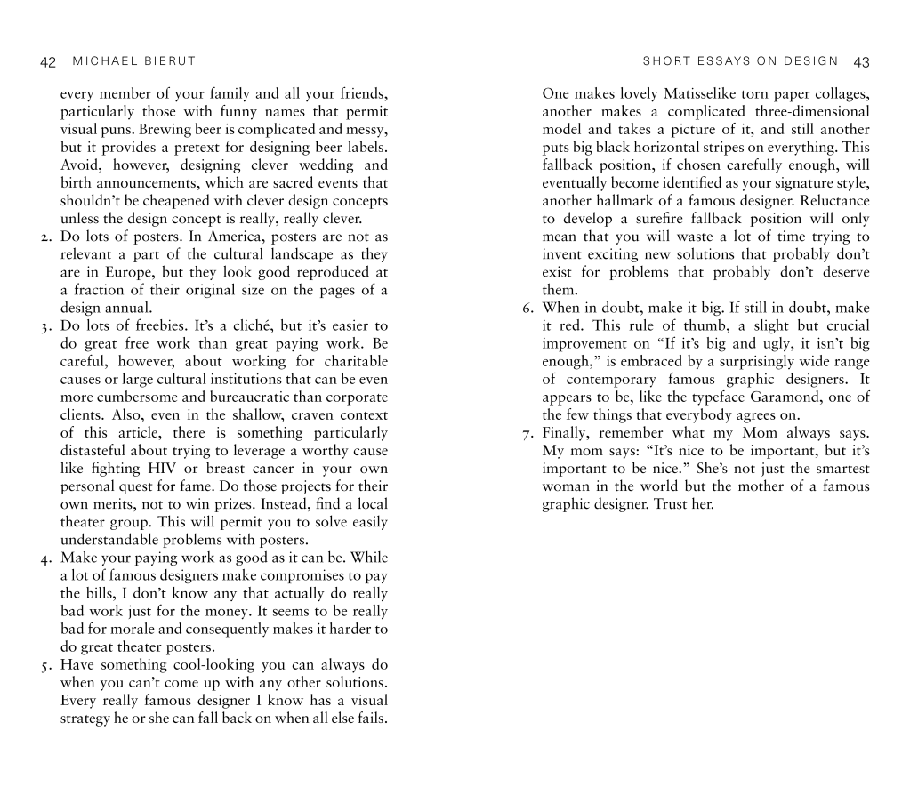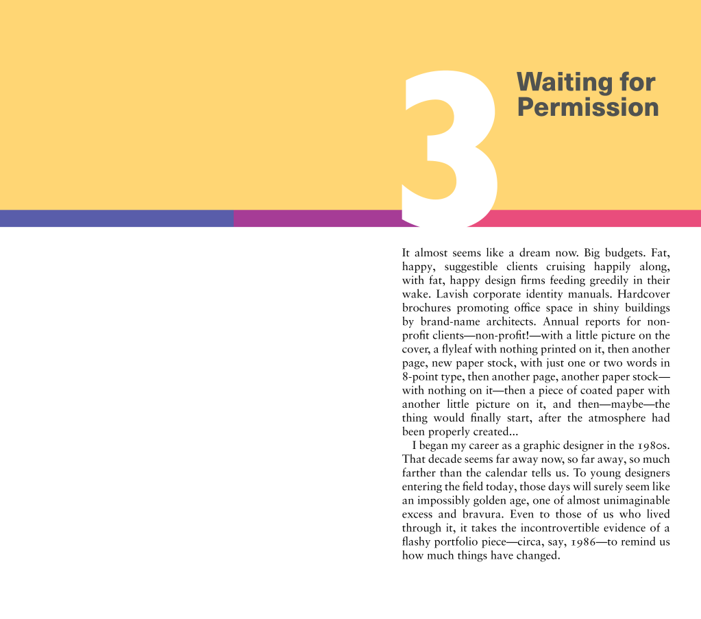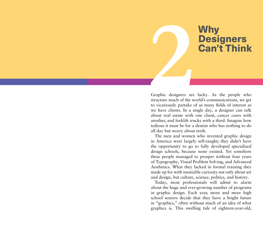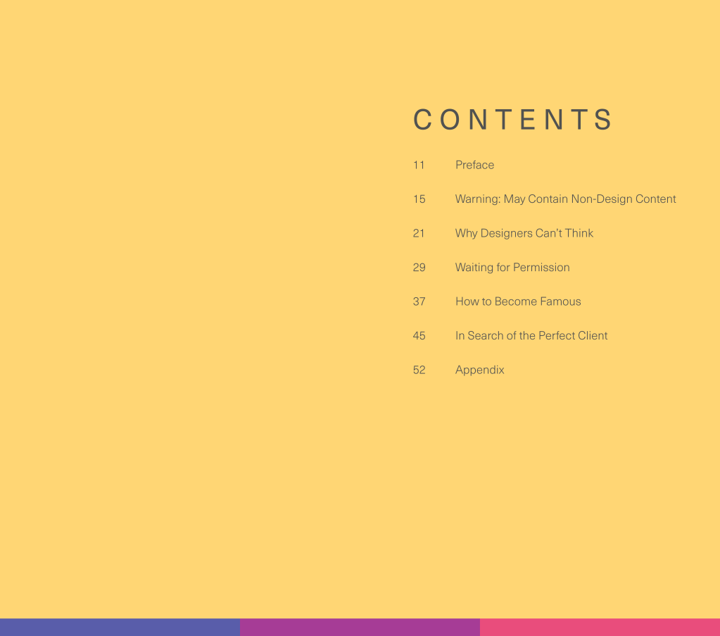 Five of Seventy-nine Short Essays on Design was a project assigned to me in college. In this project I was tasked with laying out and designing a shortened version of Michael Bierut’s Seventy-nine Essays on Design. With this project I wanted to make a pocket-sized book for the pocket-sized nature of the content and demonstrate my understanding of setting text for a book. I wanted to aim for a modern, functional and fun aesthetic. I also took a a few cues from the original book, like setting each chapter number in a different font. Over all I think this is probably one of my best examples of setting text throughout a whole book.