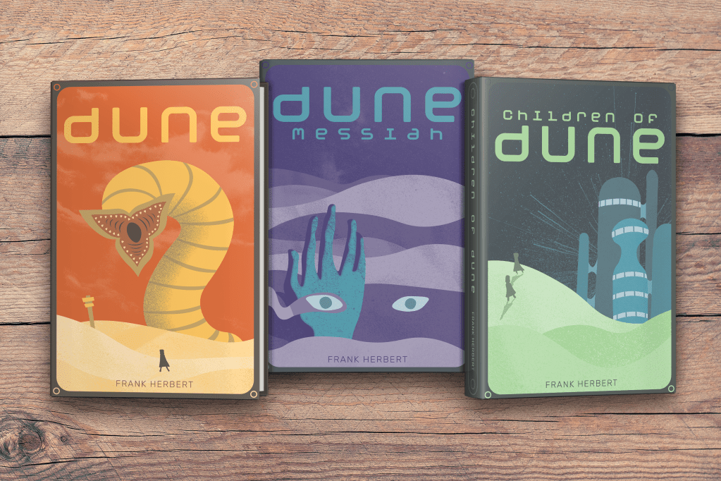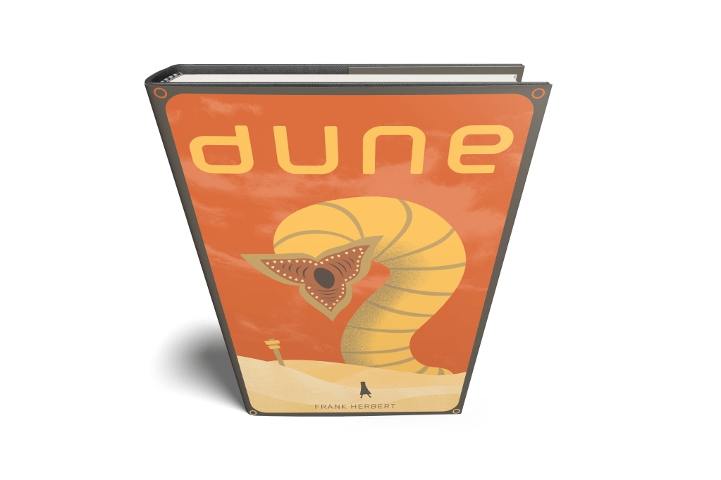 These Dune Trilogy book covers were a project assigned to me in college. I have a deep fascination for the works of Frank Herbert, especially the Dune saga. When this was assigned, Denis Villeneuve’s adaptation of Dune had recently come out in theaters so it was fresh in my mind. It was immediately a prime candidate for a book I would really like to re-illustrate the covers of. I tried to make a different take on the standard Dune book covers while also making it my own. The display title text, for example, is mostly always in all-capital letters historically, so I wanted to try doing it in all lower case. Instead of a seventies-groovy-science fiction aesthetic I wanted to capture a more modern, sleeker atmosphere while still maintaining the vastness and scale of Dune. Over all I am very satisfied with the end product.