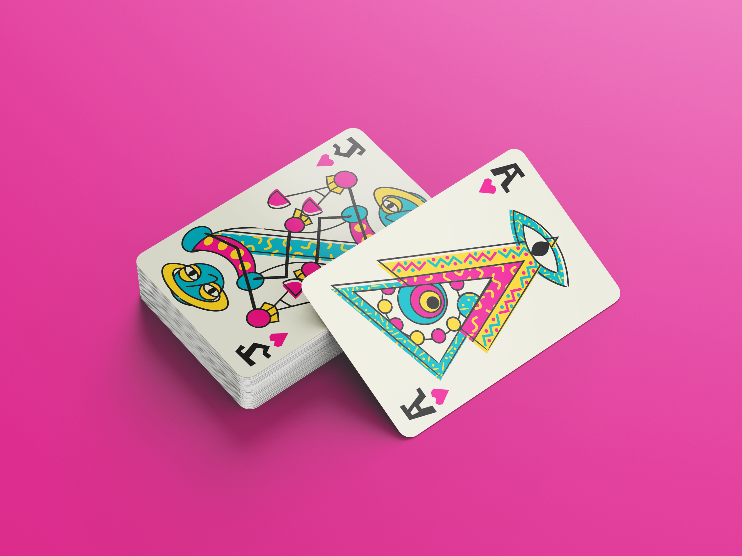 These are Memphis-Style Playing cards I made for a college assignment. Given the emphasis on creative liberty at the start it didn’t take me long to arrive to “I’ll do Memphis!” as a design direction given it is a movement I deeply adore. I used a raw neon CMYK color palette with off-white as a backdrop and focused heavily on the line work. I made sure to not miss another playbook Memphis move being the use of bacteria patterns. Overall I’m extremely satisfied with the result.