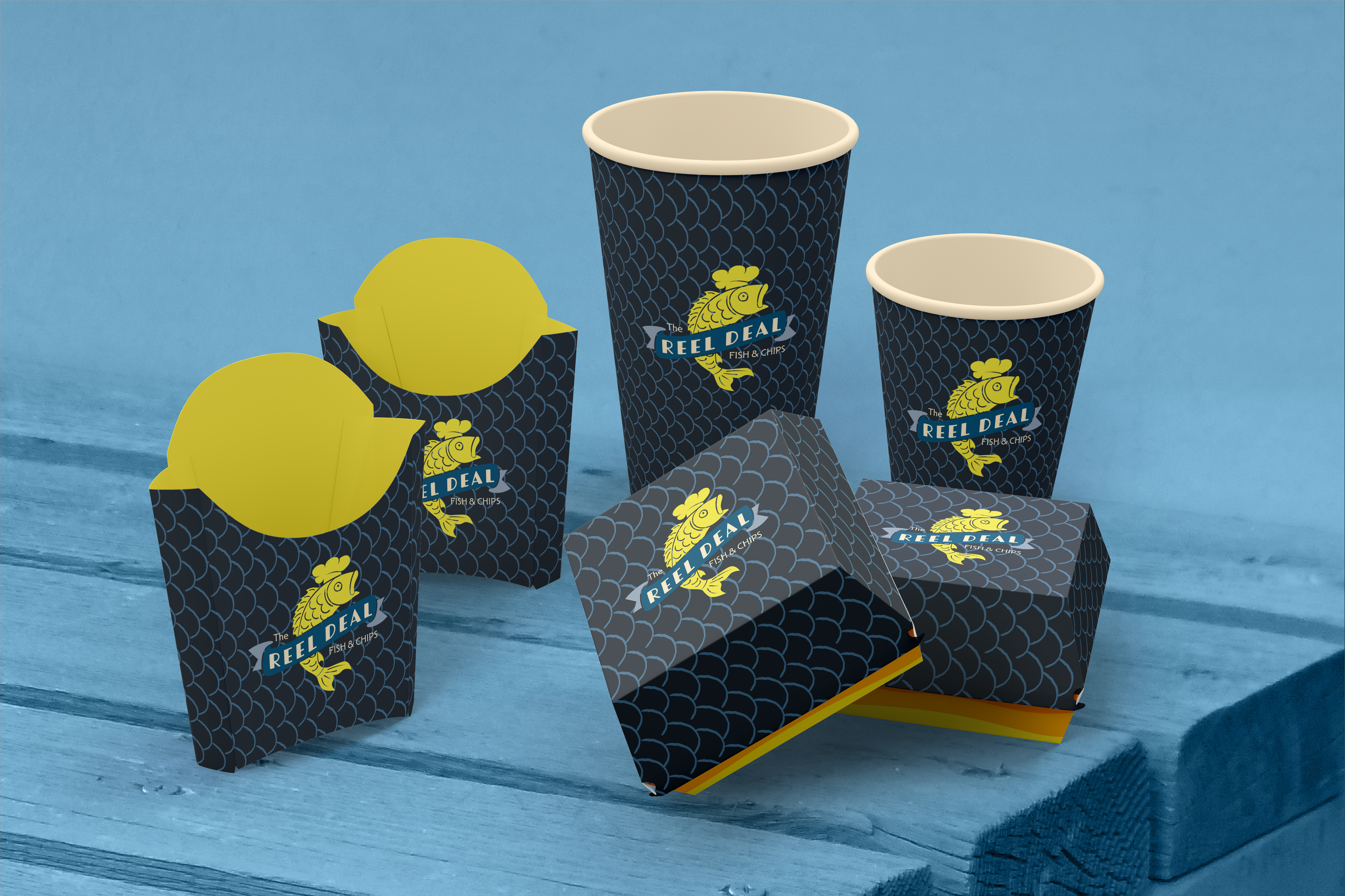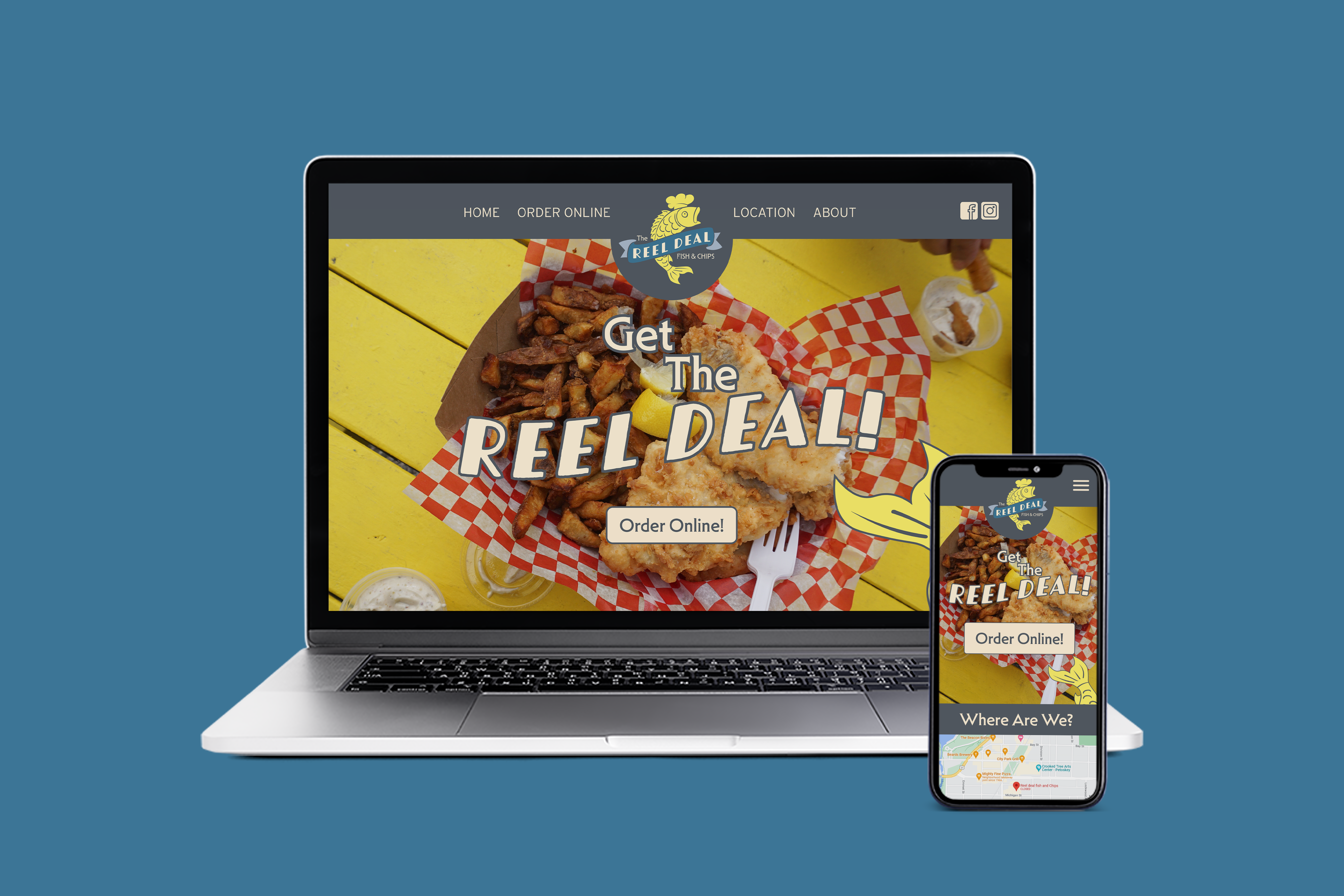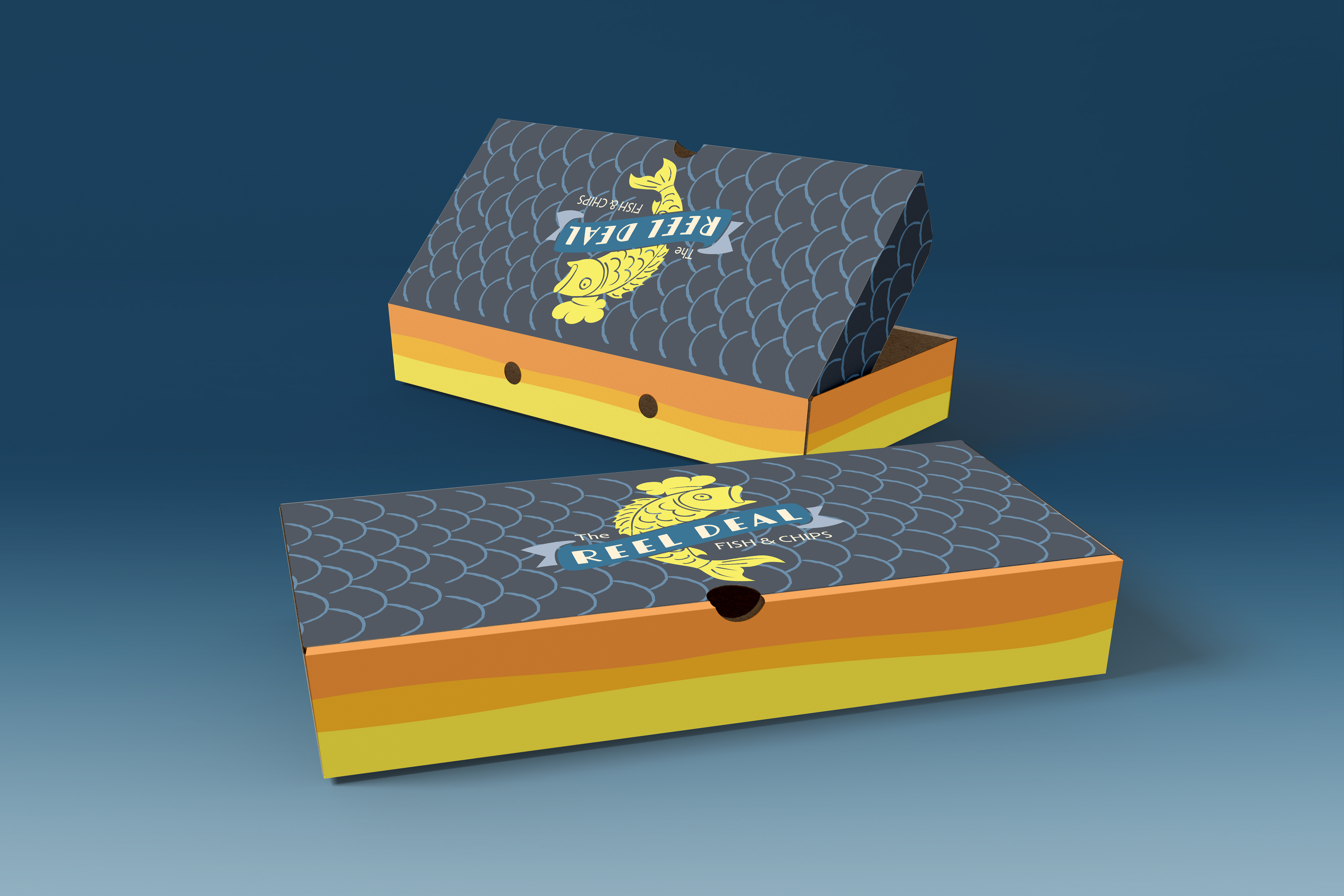 This was a rebranding project assigned to me in college. Reel Deal Fish & Chips is a food truck located in Petoskey, MI. For this project I wanted to aim for a vintage nautical theme fitting for a quality mobile seafood joint. I focused on making a illustrated and sunset-beachy-lakeside-cutesy atmosphere. Being the biggest form of physical advertising real estate, the truck has the most detail and color packed into it, sure to catch the eyes of any peckish food truck peruser. Seeing the end product, I think this is probably one of my best rebrandings yet. I also realized I quite like doing food-related branding projects as it almost always makes me hungry.